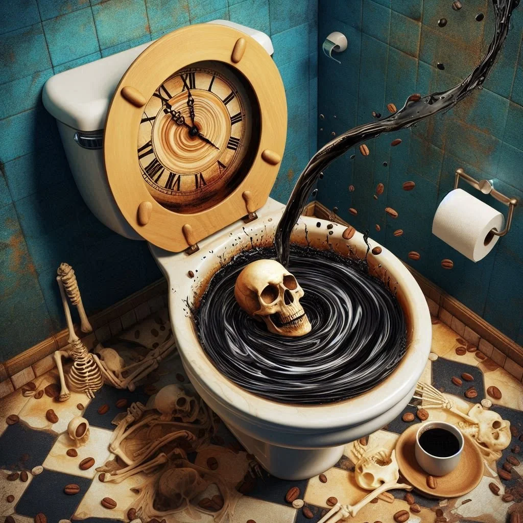 Chet Banks, or Chedda Money if you knew him in high school, or Chee-Easy now on social, is standing in line at Starbucks. His morning routine. Got that pin-stripe blue suit with the tapered legs, but he skipped the gym for a few weeks so his belt’s strugglin’. Sure he could take it down a notch, but that would be taking an “L” and Chet’s not about it. Plus it reminds him he’s got to get back to his gym routine. The coffee’s on his mind now. It excites him knowing that black bitter fuel will jump-start his nerves. He’s got that anxiety, but he likes it that way. It’s more energy. And more is more. No sugar for him. He’s good to himself like that. He hates routine, but can’t help falling into it. Two cups in the morning, first shit at half past nine, two more by ten, and five shits total before noon. Thinks of the office and how he had promised himself he’d never end up in one. “That’s what happens when you get married,” he rationalizes. He checks his watch and calculates how much time he’s got left to wait in line before he’s late. A minor panic. Now he’s irritable and inhales deep. His belt wails in agony. He’s never late, but he always gets anxious about it. Never late, mate–that’s his motto. “Can’t let yourself down like that, bro!” He shouts mentally. The coffee arrives just in time to prevent a panic attack.